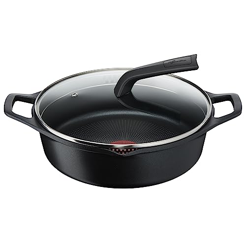 Lagostina Aroma 2 handtag med lock, kastrull av gjuten aluminium, Ø 28 cm, induktionskokar/gasugn med värmesignal, titanlock, glaslock