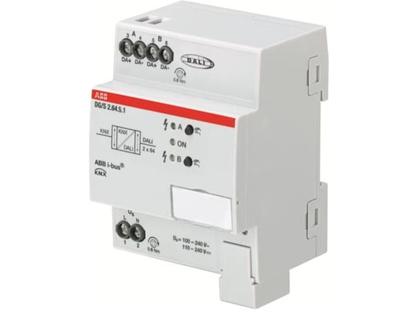 Abb Dali Gateway Premium, 2 Kanaler, Mdrc, Styr Upp Till 2X64 Dali-Enheter Individuellt Eller I Grupp, Stöder: Dt-8, Hcl, 90X70x63,5Mm