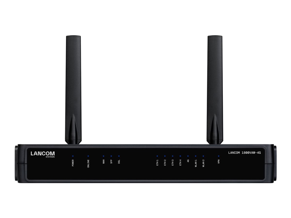 Lancom 1800Vaw-4G - Sd-Wan Gateway - With Vdsl - 5 Portar - Wi-Fi 6 - 4G, 3G - 2.4 Ghz, 5 Ghz - Lte B1/B3/B7/B8/B20/B28/B32/B38/B40/B41/B42/B43 - För Lancom Sfp-Aon-1, Sfp-Bidi1550, Co1, Sfp-Gpon-1, Sfp-Lx-Lc10, Sfp-Sx2-Lc1, Sfp-Sx-Lc10