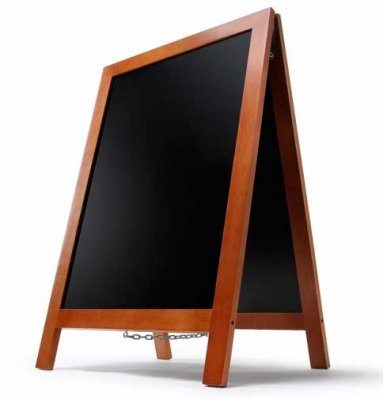 DISPLAY SALES Gatupratare trä ekonomi 54 x 95 cm vädertålig, monter av mörkt bokträ, magnetisk kritskiva