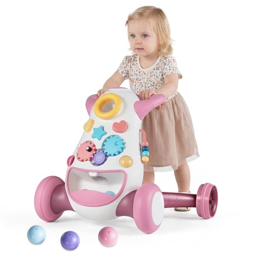 QDragon Pedagogiska vagn, 2 i 1 gåvagn med hjul, baby underhållningsbord, barn tidigt pedagogiskt aktivitetscenter, baby skjutvagn för pojkar och flickor, rosa