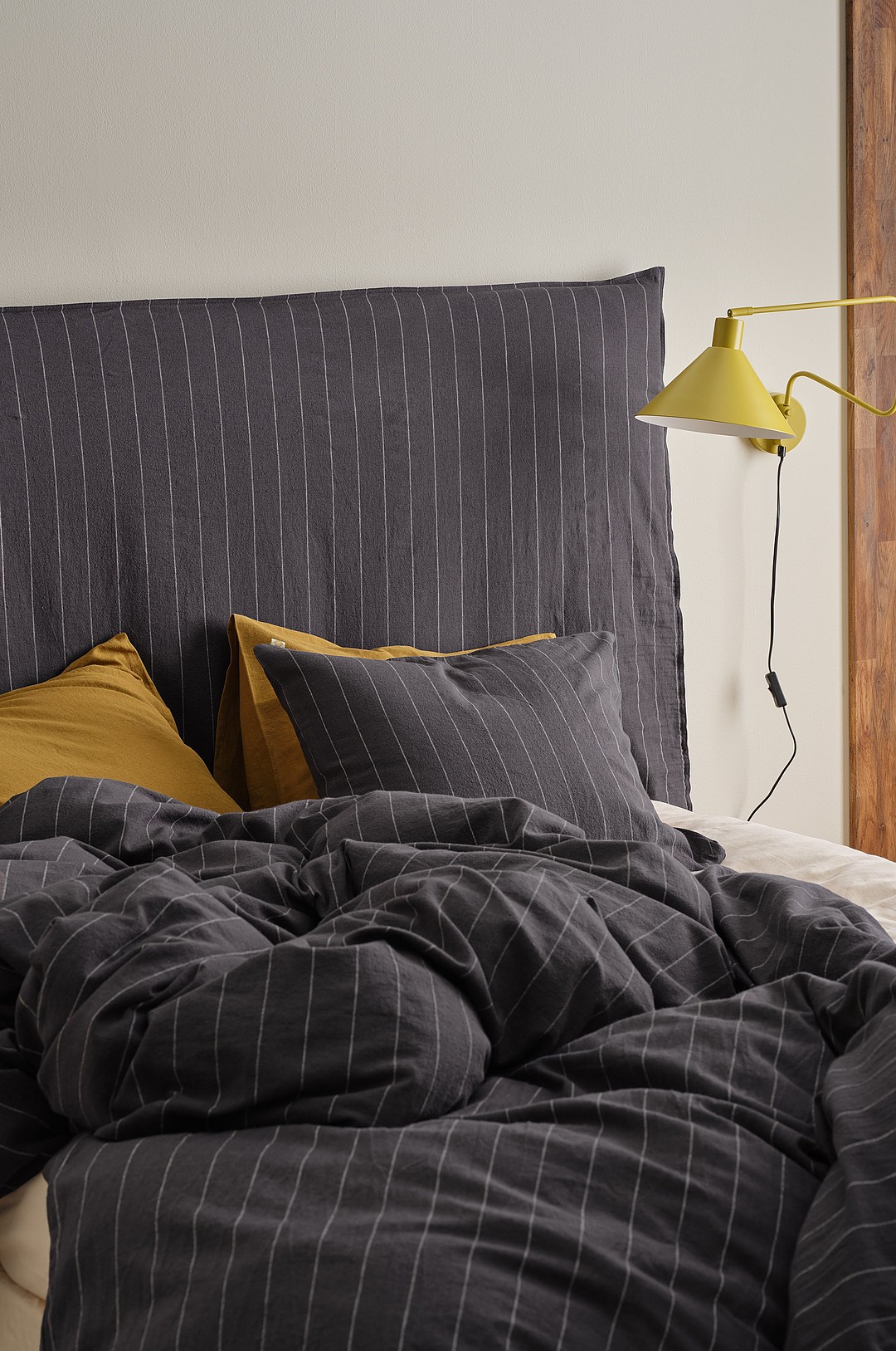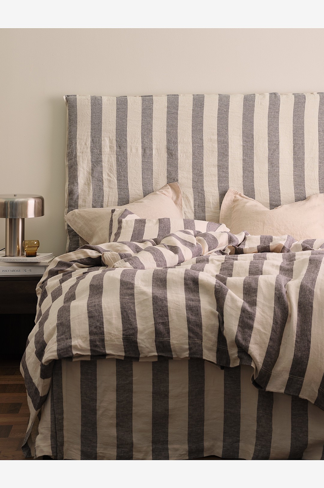 Ellos Home - Gavelöverdrag Elly Thin Stripe i återvunnet halvlinne - Grå