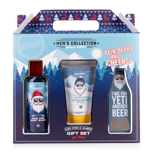 Accentra Present för Män MEN'S COLLECTION WINTER EDITION i gåvobox, schampo & duschgel, flasköppnare i ölflaska-design, doft: Isad Tall & Bärnsten, herrgåva jul