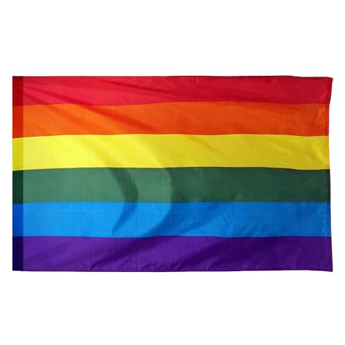 Runesol Rainbow Pride-flagga, 91 x 152 cm (3 x 5 fot), 4 öljetter, öljett i varje hörn, Gay Pride-flagga, HBTQ-flagga, internationella dagen mot homofobi, för festival, parad och firande