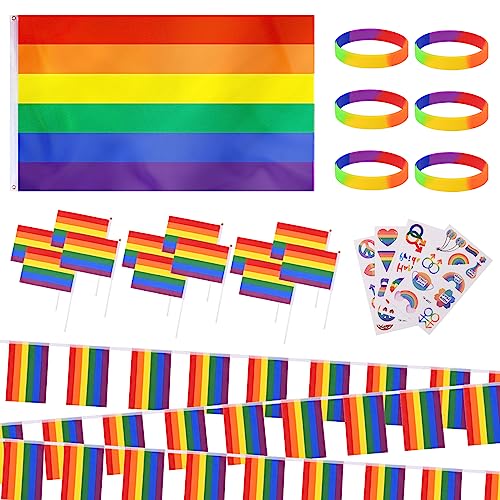 Vicloon Pride-flaggor dekorationer 24 st, 1,5 x 0,9 m gay pride flagga hbt-flagga med tillbehör, regnbågsfärger, perfekt för inomhus/utomhusbruk