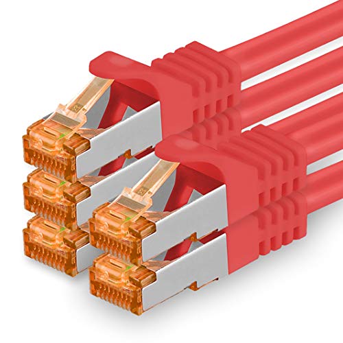 1aTTack.de 5x 1 m - röd - Cat7 Cat 7 10 GB/s SFTP Ethernet-nätverkskabel - RJ45 Ethernet LAN DSL Router modem