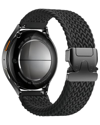 Justerbar nylonrem med ögla, Compatible with Samsung Galaxy Watch Band 7/FE/6/5/4/3 & Watch 5 Pro & 6/4 Classic & Gear S3/S2, 20mm & 22mm, magnetisk slutenhet, Svart