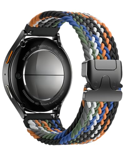 Flätat nylon klockband Stretchig sportband med säker fallskärmsspänne – Compatible with Samsung Galaxy Watch 7/FE/6/5/4/3 & Watch 5 Pro & 6/4 Classic & Gear S3/S2, Färgad