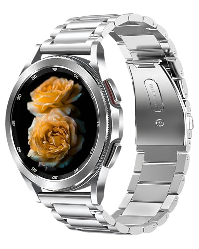 Rostfritt stål armbandsur, Compatible with Samsung Galaxy Watch Band 7/FE/6/5/4/3 & Watch 5 Pro & 6/4 Classic & Gear S3/S2, (20mm & 22mm) dubbelknapps fjärilsspänne, Silver