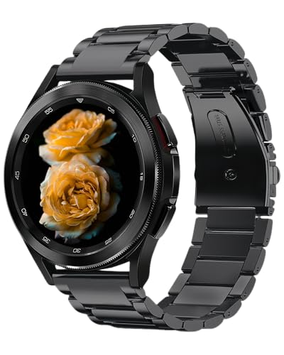 Rostfritt stål armbandsur, Compatible with Samsung Galaxy Watch Band 7/FE/6/5/4/3 & Watch 5 Pro & 6/4 Classic & Gear S3/S2, 20mm & 22mm dubbelknapps fjärilsspänne, Svart