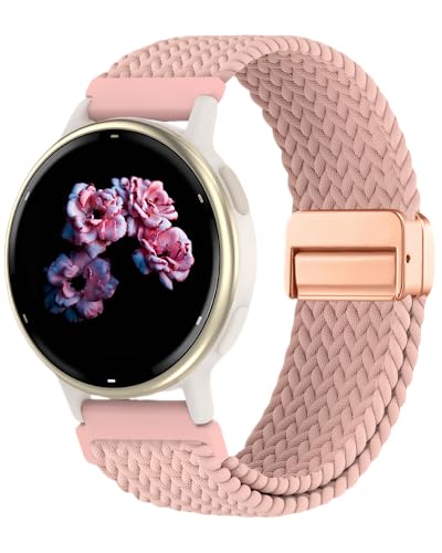 chinbersky 20 mm nylonflätad rem kompatibel med Samsung Galaxy Watch 7/6/5/4 rem 40 mm 44 mm/5 Pro 45mm/Watch 4/6 Classic/Active 2 40mm 44mm/Watch3 41mm/Gear Sport/Gear S2 Classic, Starlight/lotusrot