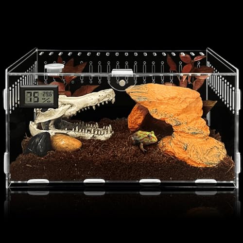 Reptil foderlåda, 30 x 20 x 15 cm akrylterrarium med elektronisk hygrometer, sniglar terrarium, reptilutfodringslåda, reptiler terrariumlåda för minidjur, insekter, gecko, akvarium