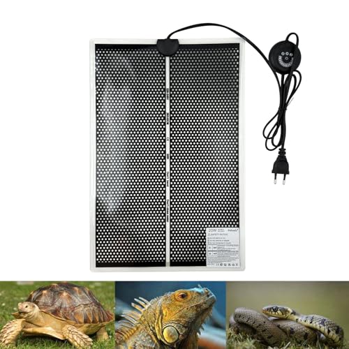PeSandy Värmedyna för reptiler, 42 x 28 cm terrarium värmematta med 7 knappar temperaturkontroll, terrariumvärmare för reptiler sköldpaddsormar ödla gecko groda hermit crab