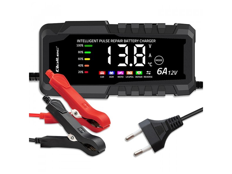 Qoltec Intelligent Mikroprocessorbaserad Laddare 12V 6A | Likriktare Med Reparationsfunktion För Agm Gel Lifepo4-Batteri | Lcd