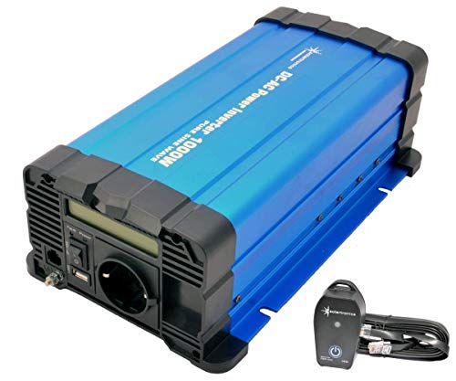 SOLARTRONICS spänningsomvandlare FS1000D 12 V 1 000 watt med display – inverterare 12 V till 230 V – ren sinus – LiFePO4/litium, bly, gel eller AGM-batteri kompatibel – USB – med fjärrkontroll