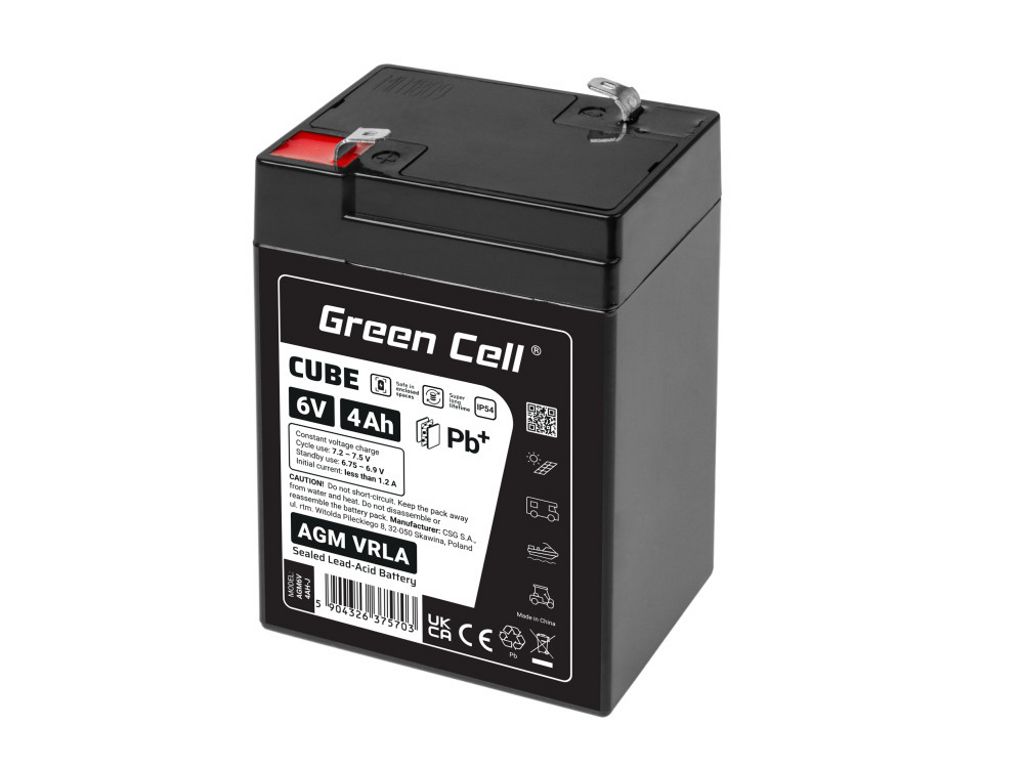 Green Cell CUBE AGM IP54 6V 4Ah VRLA Batteri Gel deep