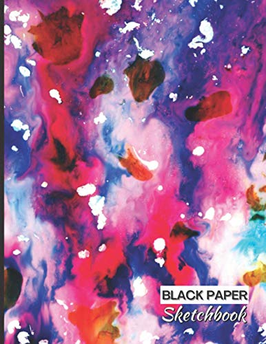 Black Paper Sketchbook: Large sketch book with black papers for gel pens, chalk, Neon highlighter Pens, gelly roll, markers, ink brushes… 130 empty pages to draw, paint… Shiny pink design for girls.