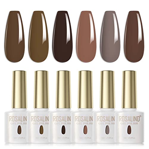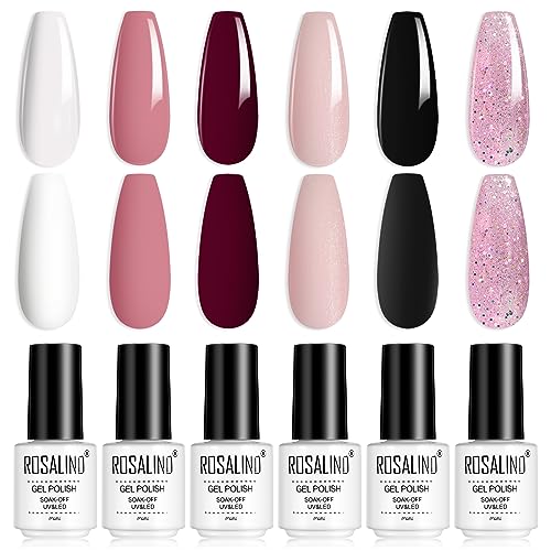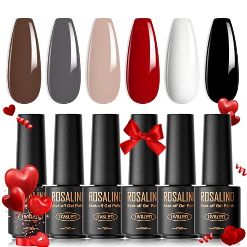 ROSALIND UV-nagellack, 6 färger Mini Gel-nagellack, UV-nagellack Set Brown Nude Red White Black Soak Off Nail Polish French Manicure för kvinnor Mamma Present Set DIY hemma