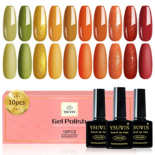 YSUVIN UV-nagellack, 10 färger orange gul grön röd höst gel nagellack blötläggning UV gel gellack för halloween jul nagelkonst gör-det-själv och nyårsgåvor, 8 ml