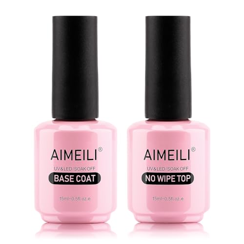 AIMEILI Bas och Topprock Gel nagellack Soak Off UV LED Gel Polish Inget torkande topplack och Baslack 15ml