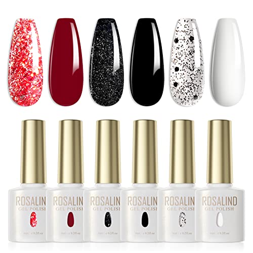 ROSALIND UV-nagellack 6 färger vit svart röd glitter röd glitter svart gel nagellack set Soak Off LED gel nagellack för UV-lampa set Alla hjärtans dagv