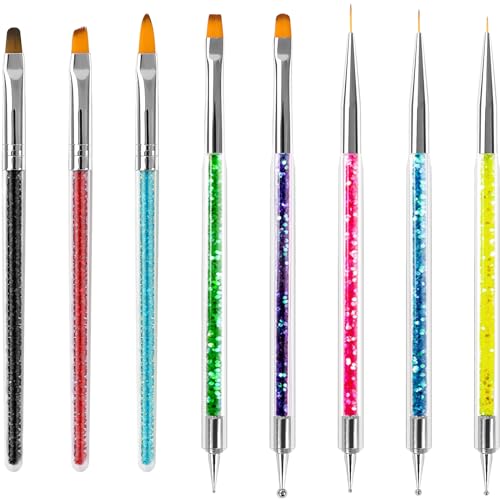 Qufiiry 8 Pcs Nail Art Brushes, Nail Dotting Tools, Double Ended Nail Art Pens Gel Nails, Nail Art Design Pen Painting Tools, for Nail Art Design, DIY, Detailing Y