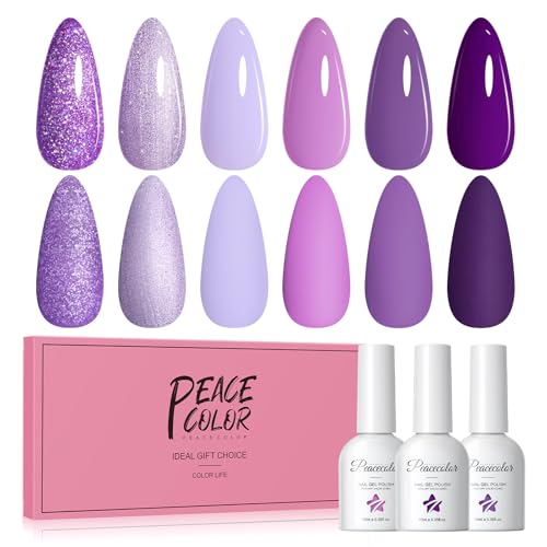 PEACECOLOR 6 färger UV-nagellack Set Lila Soak Off Nail Polish Colour Gel Set Manikyr Set Gel Nails DIY Set 10ML