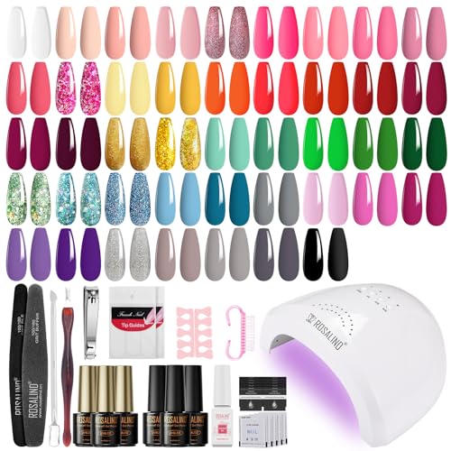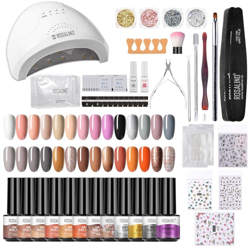 ROSALIND Gel Nagellack Starter Set med 48W UV lampa Gel Nails Kit 28ST Mini Nagelkonst Manikyr Nagelgel Kit med Bas och Top Matt Coat