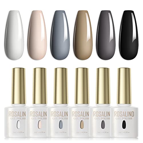 ROSALIND UV-nagellackset 6 färger Vit Nude Grey Black Gel Nail Polish Set Colour Gel for Nails Soak Off LED Nail Gel Polish For UV Lamp Salon Design Kit 6ml