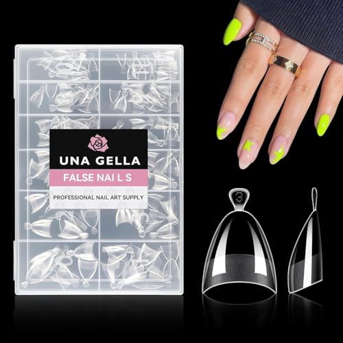 UNA GELLA Nail Tips for Gel Nails, Medium Half Tips Almond (with Handle), 216 pcs, Half Cover, Press On Soft Gel Acrylic, 12 Sizes, DIY at Home or Salon