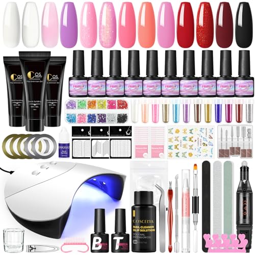 COSCELIA Gel Nails Starter Set with 36W U V/LED Light 10pcs U V Nail Polish with 3pcs Poly Nail Extension Gel Manicure Set with Electric Nail Cutter for Nail Design