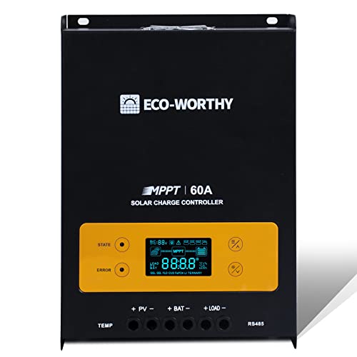 ECO-WORTHY 60 A MPPT solladdningsregulator 12/24/36/48 V DC ingång och digital OLCD-display och temp sensor och montering ground, 99 % laddningseffektivitet solregulator för litium/GEL/Flooded