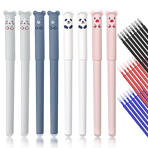 Relota 8 stycken raderbar kulspetspenna, raderbar penna, set med 24 påfyllningar, gelpenna, raderbar, 0,35 mm, raderbar gelpenna, tecknad söt gel-bläckpenna för barn och vuxna
