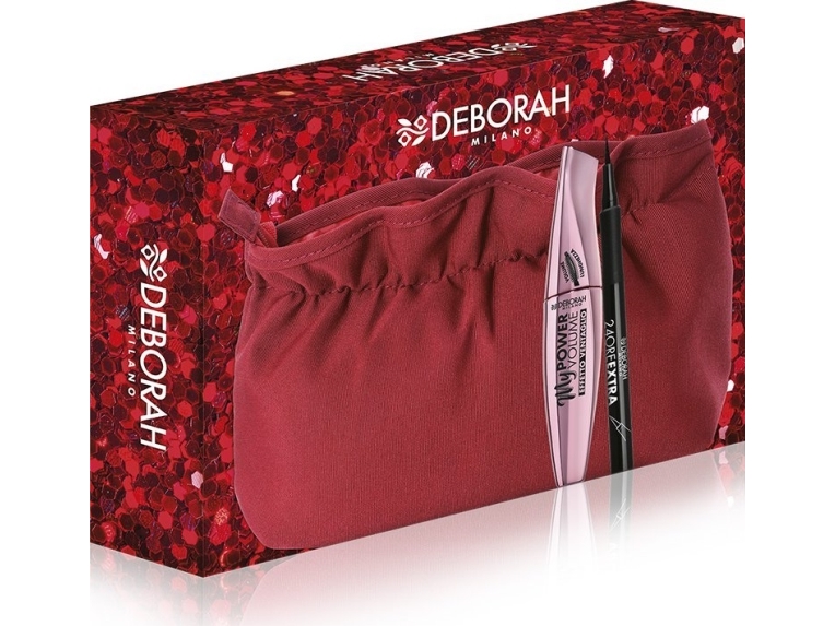 Deborah Set Deborah: Instant Maxi Volume, Volumizing, Mascara, Black, 11 Ml + 24 Ore Extra, Gel Pencil Eyeliner, Black, 1.5 G + Makeup Bag, Blue For Women