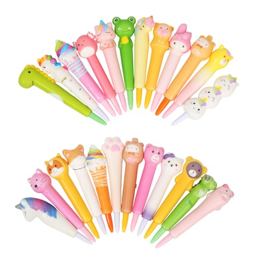 Gudotra 24 stycken födelsedagsprylar för barn pennor gel klämning anti-stress pennor present till fest födelsedag bläck svart