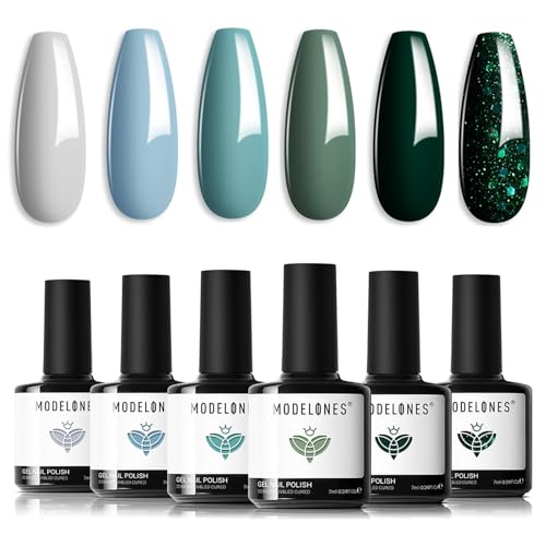 modelones UV nagellack, glitter grön blå 6 färger skal lack gel nagellack set, blöt av naturlig gel polish nageldesigner, UV LED nagellack gelpolish nagellack för nybörjare nagelkonst manikyr salong