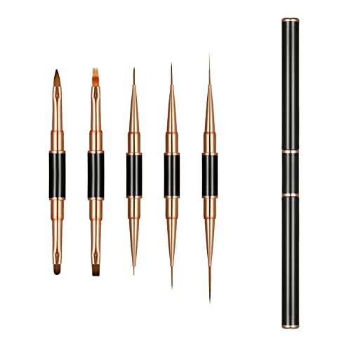 Nagelkonstborstar Set, 5st Dubbelsidigt Nagel Målnings Borstar Akryl Nail Art Liner Pensel Polish Gel Borstar DIY Designverktyg för Manikyr Professionell Salong och Hemmabruk