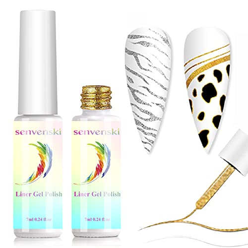 Senvenski Liner Nagellack Nagel Gele, Nail Art Gel Liner Måla Utformning Set Guld Silver Gel Nail Polish Gåva UV LED (LX2-001)