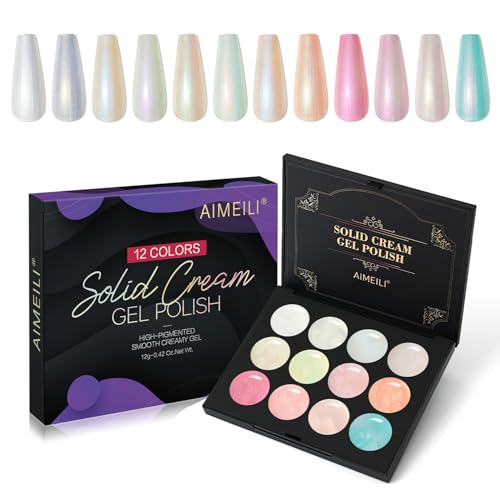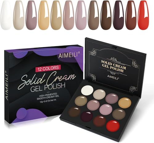 AIMEILI Gel Nagellack 12 Färger UV LED Soak Off Solid Cream Gel Polish Set 13