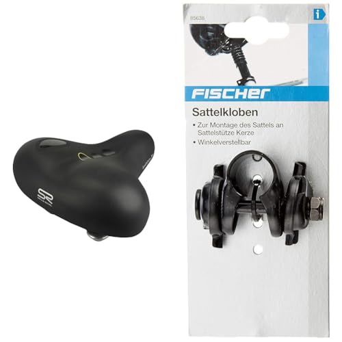 Selle Royal elastomer gel 85650 Sadel, 33 x 25 x 13.5 cm & Fischer 85638 Sadelklämma, Svart, 18.5 x 8 x 4 cm