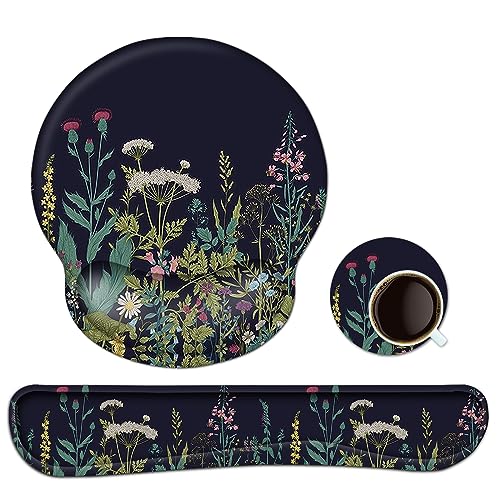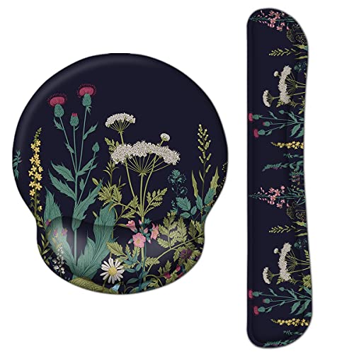 AOKSUNOVA Ergonomisk musmatta med handstöd, musmatta med gelkudde, handledsstöd, tangentbord, blommor