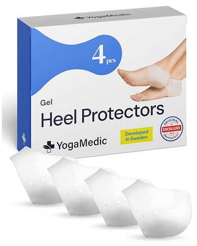 YogaMedic Hälskydd i silikon, hälkuddar för skor, 4 stycken mjuka gel-silikonkuddar, hälstrumpor för hälsmärta, plantar fasciit, torr sprucken häl, hälsenan - gelkudde