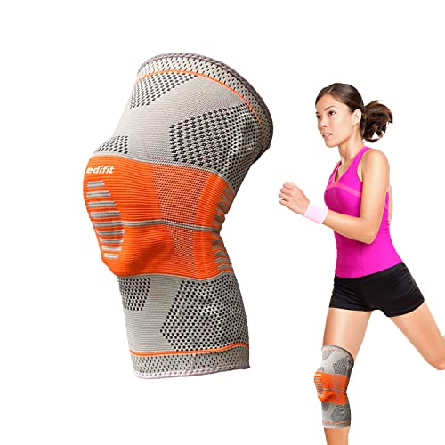 Edifit, Sportknäskydd, för menisk och ligament, arbete, crossfit, kompression, justerbar, med sidostabilisatorer och gelkudde (orange, M)
