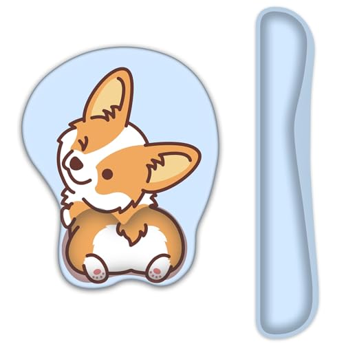 AOKSUNOVA 3D-musmatta med gelkudde, ergonomisk musmatta, Corgi blå handledsstöd, tangentbord