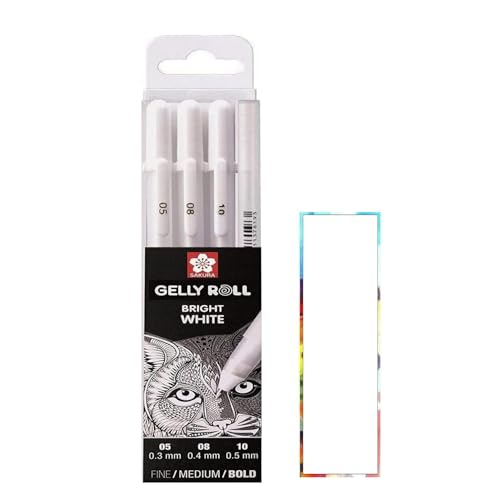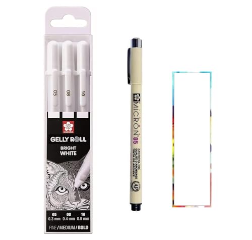 Sakura Gelly Roll White, Bright White-pennor i ett fodral, storlek 10 (0,5 mm) + Sakura Pigma Micron Black 05