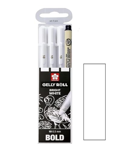 SAKURA Gelly Roll White, 4 Bright White-pennor i ett fodral, mellanstorlek 05/08/10/10.