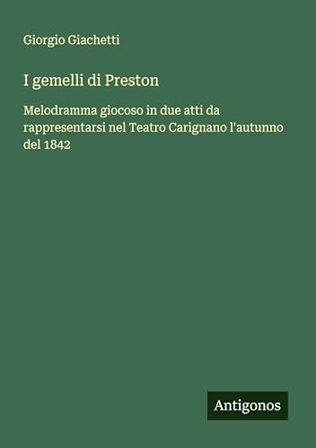 I gemelli di Preston: Melodramma giocoso in due atti da rappresentarsi nel Teatro Carignano l'autunno del 1842