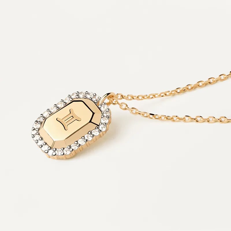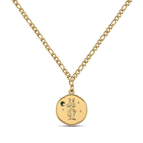 Zodiac Chain Gold med Birthstone för damer - 18K Guldpläterat halsband med Zodiac Pendant (Gemini)