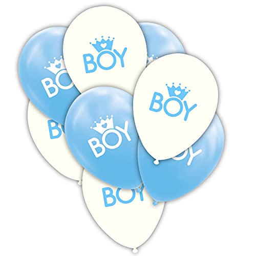Latexballonger, gender reveal babyshower, BOY-tryck, 30 cm, blå/vit, 8‑pack
