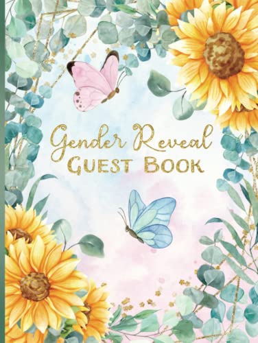 Gender Reveal Guest Book: Large Hardcover for Party with Baby Predictions & Advice. Bonus Gift Log & Photo Page. Keepsake Gift for Parents. Sunflower & Butterfly Design.